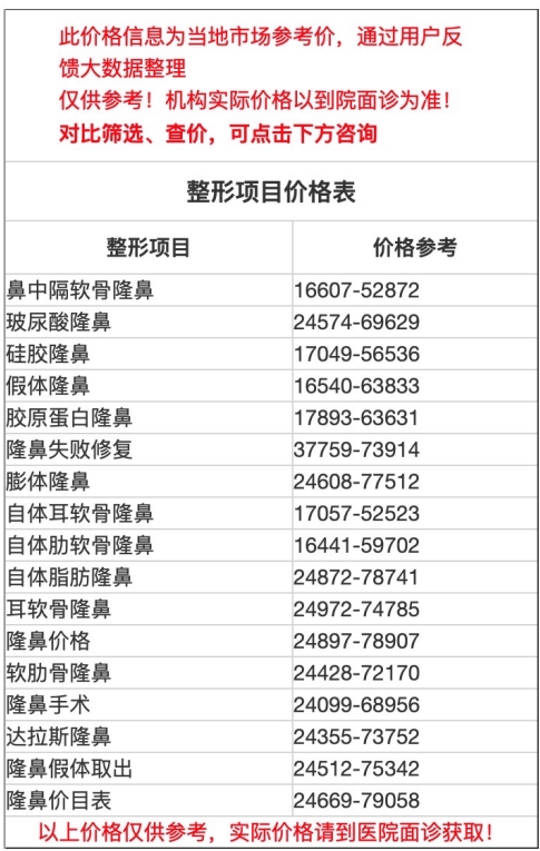 二、贛州市人民醫(yī)院整形科隆鼻價(jià)目表