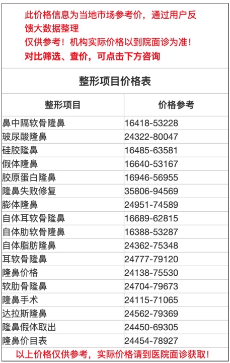二、萍鄉(xiāng)市第二人民醫(yī)院整形科隆鼻價(jià)目表