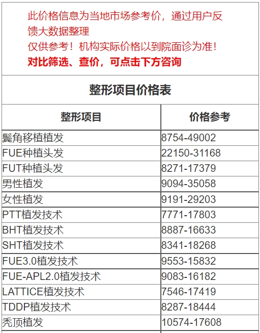 二、上饒尚美醫(yī)療美容整形植發(fā)價格