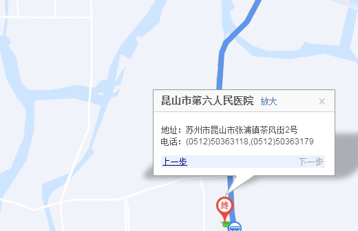 12.4公里步行860米 昆山市 行 350米市政府西站 上車昆山7路通關點站下車通關點站 上車昆山109路團結橋站下車步行 520米昆山市第六人民醫(yī)院