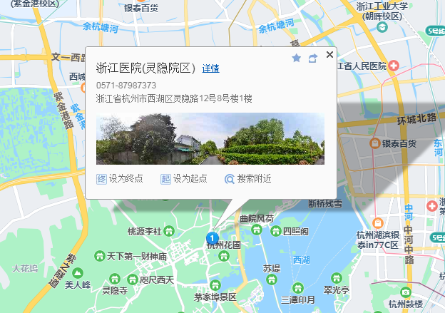 醫(yī)院地址:浙江省杭州市西湖區(qū)靈隱路12號8號樓1樓