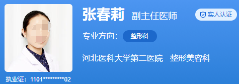 醫(yī)生介紹:張春莉,女,整形外科副主任醫(yī)師,張春莉醫(yī)生從事整形美容外科工作已經(jīng)有20多年了,曾經(jīng)在國內(nèi)外知名醫(yī)院整形外科進修深造,現(xiàn)在張醫(yī)生是河北省整形美容協(xié)會的常務理事,張醫(yī)生對于面部年輕化手術操作比較擅長,能夠熟練的進行眼袋去除手術操作、雙眼皮手術操作、以及失敗雙眼皮的修復調(diào)節(jié)。